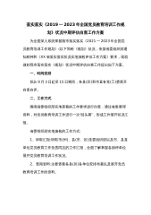 落实落实《2019一2023年全国党员教育培训工作规划》状况中期评估自查工作方案为全面深入系统掌握我市落实落实《2021一2023年全国党员教育培训工作规划》(以下简称《规划》状况,依据省委组织部通知精神和《XX省落实落实状况实地抽检评估工作方案》要求,现就做好我市落实落实《规划》状况中期评估自查工作提出如下方案。一、时间安排拟从9月3日起至15日期间,各县(区)和市直各党(工)委展开自查自评。二、工作方式围绕省委组织部实地查看的工作要求进行自查,通过收集整理资料,对党员教育培训工作进行一次“回头看”,形成工作展开状况汇报。省委组织部实地抽检的工作方式:1、听取汇报:听取市(州)、县(市、区)...