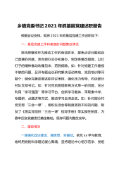 乡镇党委书记2021年抓基层党建述职报告根据会议安排。现将2021年抓基层党建工作述职如下:一、基层党建工作和查摆的问题整改情况坚持把整改作为推动工作的有效抓手,聚焦点评问题和自己查摆的问题,亲自领办交办和督办,制定条整改措施,以钉钉子的精神推动吹糠见米、药到病除。如:针对党建工作重视不够的问题,召开专题会议研究解决活动阵地、党员培训等问题个;健全完善定期述职评议考核,强化压力传导,约谈部分村队支部书记。如:针对党员管理教育方式单一的问题,充分利用“学习强国”等学习平台,创新学习载体,采取集中学、专题研、点题讲等方式,推动学习走深走实。如:针对部分村党支部“三会一课”、组织生活会等制度坚持不好...