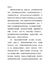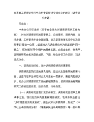 同志们:刚才,**同志领学了《习近平关于“调查研究”的重要论述(摘编)》,**同志传达了《中办印发》,**、**、**、**等5位同志围绕学习内容进行了发言。下面,就下一步全市贯彻落实部署安排,我讲几点意见。调查研究是我党的优良传统,也是我党的一项基本工作方法和领导制度。历史的经验和实践表明,什么时候重视调查研究,工作方针和决策符合客观实际,党的事业就顺利发展;什么时候忽视调查研究,就会导致主观与客观相脱离,造成工作失误,使党和人民的事业遭受损失甚至挫折。为全面贯彻落实党的二十大精神,今年年初,市委在全市上下开展了为期两个月的“新阶段、新发展”大讨论活动,提出了以大开放带动大工业、大物流、大旅...