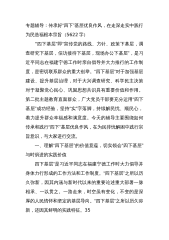 专题辅导:传承好“四下”基层优良作风,在走深走实中践行为民造福根本宗旨(5622字)“四下基层”即“宣传党的路线、方针、政策下基层,调查研究下基层,信访接待下基层,现场办公下基层”,是习近平同志在福建宁德工作时亲自倡导并大力推行的工作制度,是密切联系群众的重大创举。“四下基层”对于加强基层建设、提升基层治理,对于大兴调查研究、科学民主决策对于凝聚党心民心、巩固思想共识具有重要价值和作用。第二批主题教育直面群众,广大党员干部要充分运用“四下基层”成功经验,坚持“实”字落脚,持续解民忧、顺民心,着力提升群众幸福感和满意度。今天的辅导主要围绕如何传承和践行“四下”基层优良作风,在为民排忧解困中践行宗...