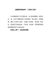 在市委主题教育第一次调研成果交流会上的讲话同志们:调查研究是辩证唯物主义的基本工作方法,是党从一个胜利走向另一个胜利长期实践中形成的优良传统和重要法宝。回顾党的历史,党通过做好调查研究,掌握党情、国情、社情,审时度势,谋划治党治国方略,不仅扭转了中国发展进程中的种种困局,更引领党和国家事业取得新的成就。在学习贯彻习近平新时代中国特色社会主义思想主题教育中,党中央决定在全党大兴调查研究,作为全党开展主题教育的重要内容。习近平总书记多次强调调查研究的重要性,并躬身垂范,把调查研究走“深”、走“实”、走“细”、走“真”,在武装理论中走深、在解答问题中务实、在洞察历史大势中明向、在满足人民需要中定策,...