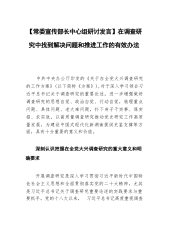 【常委宣传部长中心组研讨发言】在调查研究中找到解决问题和推进工作的有效办法中共中央办公厅印发的《关于在全党大兴调查研究的工作方案》(以下简称《方案》),对于深入学习领会习近平总书记关于调查研究的重要论述,进一步增强做好调查研究的思想自觉、政治自觉、行动自觉,梳理重点问题、具体问题、老大难问题,扑下身子干实事、谋实招、求实效,以高质量调查研究推动党史研究工作高质量发展,为建设中国式现代化新湖南提供史鉴支撑等方面,具有十分重要的意义和价值。深刻认识把握在全党大兴调查研究的重大意义和明确要求开展调查研究是深入学习贯彻习近平新时代中国特色社会主义思想和全面贯彻落实党的二十大精神,尤其是习近平总书记关于...