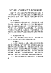 2023年在全市各级党组织和广大党员干部中大兴调查研究的实施方案为深入学习贯彻习近平新时代中国特色社会主义思想,全面贯彻党中央关于在全党大兴调查研究的重要部署,动员组织全市各级党组织和广大党员干部广泛深入调查研究,更好落实党的XX大精神和习近平总书记对XX工作重要讲话重要指示精神,推动中国式现代化XX新实践开好局起好步,根据《中共中央办公厅印发〈关于在全党大兴调查研究的工作方案〉的通知》和《中共XX省委办公厅印发〈关于在全省各级党组织和广大党员干部中大兴调查研究的实施方案〉的通知》要求,紧密结合XX实际,制定本实施方案。一、总体要求坚持以习近平新时代中国特色社会主义思想为指导,深入学习习近平总...