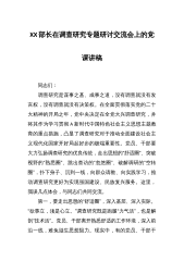 XX部长在宣传部理论学习中心组调查研究专题研讨交流会上的党课讲稿