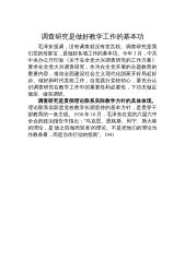 调查研究经验做法材料:多措并举持续推进调查研究走深走实XX学院党委深入学习贯彻习近平总书记关于调查研究的重要讲话精神和党中央、省委大兴调查研究的决策部署深入开展调查研究,与理论学习、推动发展、检视整改、建章立制一体推进,坚持“四度”融合,以整改问题、促进发展的实际行动确保主题教育取得实效。一、强化顶层设计,在活动谋划上提升“高度”。一是坚持思想引领。XX学院党委始终坚持以习近平新时代中国特色社会主义思想为指导,把深入贯彻落实党的二十大精神、习近平总书记关于教育的重要论述贯穿调查研究全过程,在深学细照笃行中夯实坚定拥护“两个确立”、坚决做到“两个维护”的思想根基。二是强化组织保障。聚焦落实“学思...