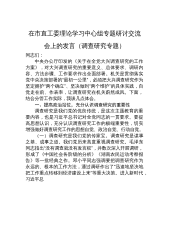在市直工委理论学习中心组专题研讨交流会上的发言(调查研究专题)同志们:中央办公厅印发的《关于在全党大兴调查研究的工作方案》,对大兴调查研究的重要意义、总体要求、调研内容、方法步骤、工作要求作出全面部署。机关是贯彻落实党中央决策部署的“最初一公里”,必须把大兴调查研究作为坚定拥护“两个确立”、坚决做到“两个维护”的具体实践,自觉走在前、作表率,让调查研究在机关蔚然成风。下面,结合分管工作实际,我谈几点体会。一、提高政治站位,充分认识调查研究的重要性调查研究是我们党的优良传统,是这次主题教育的重要内容,也是习近平总书记对全党同志的一贯要求。要提高思想认识,充分认识调查研究工作的极端重要性,切实增强...
