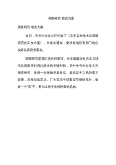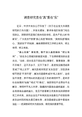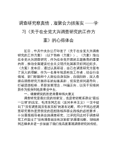 2023年专题学习《关于在全党大兴调查研究的工作方案》研讨交流发言材后附实施方案第1篇,共7篇近日,中办印发了《关于在全党大兴调查研究的工作方案》,明确了在全党大兴调查研究的重要意义,提出了在全党大兴调查研究之风的五个必须坚持的总体要求,明确了12个方面的主要调研内容,规定了在全党大兴调查研究的6个方法步骤,强调了4项工作要求。可以说,虽然调查研究一直是党强调的传家宝,全党一直在强化调查研究的重要性并切实持续推进调查研究,但以工作方案和专项通知的形式做出如此系统明确的规定,还是极少见的。可见,越到经济社会发展的关键时期,越到谋事创业的重大关头,调查研究这个传家宝,就越显重要,就越显价值。大兴调...