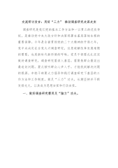 在区委理论学习中心组专题研讨会暨会议暨“走找想促”活动调研情况交流会上的发言