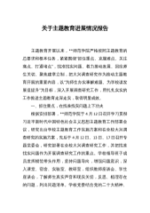 学院主题教育进展情况汇报范文(1)主题教育开展以来,xx师范学院严格按照主题教育的总要求和根本任务,紧紧围绕“抓住重点、克服难点、关注痛点、打通堵点”,找准找实问题、着力推动发展、回应师生关切、聚焦建章立制,把大兴调查研究作为推动主题教育开展的重要内容,以"为师生办实事解难题、为学校谋发展促提升"为目标,深入开展调查研究工作,用扎扎实实的工作推进主题教育走深走实,取得明显成效。一、抓住重点,在找准找实问题上下功夫根据安排部署,xx师范学院于x月x日召开学习贯彻习近平新时代中国特色社会主义思想主题教育工作部署会议,研究出台学校主题教育工作实施方案和在全校大兴调查研究的实施方案,先后于x月x日、x...