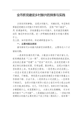 全市抓党建促乡村振兴的探索与实践办好农村的事情,实现乡村振兴,关键在党。市坚持发挥基层党建在乡村振兴中的引领作用,坚持“四下基层”,用好调查研究,系统掌握全市乡村振兴、农村基层党建的实际情况和存在问题,进一步明确抓党建促乡村振兴要抓什么、怎么抓、如何抓得好。形成调研报告如下:一、主要问题及原因面对新时代乡村振兴的新任务新要求,主要存在六个方面的问题:一是领导协调作用不够。少数县乡领导干部片面认为,抓党建就是抓“三会一课”、组织生活会等制度的规范落实,没有真正厘清“党建”与“党务”的关系,没有把党建工作真正转化到推动发展、引领治理、服务群众,实现乡村振兴目标要求上来。究其原因主要有:一是思想认识...