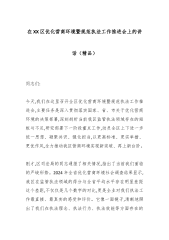 在XX区优化营商环境暨规范执法工作推进会上的讲话(精品)同志们:今天,我们在这里召开全区优化营商环境暨规范执法工作推进会,主要任务是深入贯彻落实国家、省、市关于优化营商环境的决策部署,深刻剖析当前我区监管执法领域存在的短板与不足,研究部署下一阶段重点工作,动员全区上下进一步统一思想、凝聚共识、强化担当,以更高标准、更实举措、更优作风,全力推动我区营商环境实现新突破、再上新台阶。刚才,区司法局的同志通报了相关情况,指出了当前我们面临的严峻形势。2024年全省优化营商环境社会调查结果显示,我区在监管执法领域的得分与全省平均水平存在明显差距这个差距,不仅仅是几个数字的对比,更是企业对我们执法工作最直...
