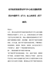 在市政府党组理论学习中心组主题教育第四次专题学习(扩大)会上的讲话(四下基层)同志们:今天,我们在这里召开市政府党组理论学习中心组主题教育第四次专题学习(扩大)会,主要任务是深入学习贯彻习近平总书记考察江西、亲临X重要讲话精神和关于“四下基层”的重要批示精神,深刻理解、领悟“四下基层”的精神内涵,大力弘扬、践行“四下基层”的优良传统,不断增强工作的原则性、系统性、预见性、创造性,奋力迈出打造“三个区域中心”、建设“一个美好家园”的坚实步伐。第一、要深刻领悟“四下基层”内容内涵。“四下基层”即“宣传党的路线、方针、政策下基层,调查研究下基层,信访接待下基层,现场办公下基层”,这是习近平总书记19...