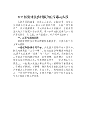 全市抓党建促乡村振兴的探索与实践办好农村的事情,实现乡村振兴,关键在党。市坚持发挥基层党建在乡村振兴中的引领作用,坚持“四下基层”,用好调查研究,系统掌握全市乡村振兴、农村基层党建的实际情况和存在问题,进一步明确抓党建促乡村振兴要抓什么、怎么抓、如何抓得好。形成调研报告如下:一、主要问题及原因面对新时代乡村振兴的新任务新要求,主要存在六个方面的问题:一是领导协调作用不够。少数县乡领导干部片面认为,抓党建就是抓“三会一课”、组织生活会等制度的规范落实,没有真正厘清“党建”与“党务”的关系,没有把党建工作真正转化到推动发展、引领治理、服务群众,实现乡村振兴目标要求上来。究其原因主要有:一是思想认识...