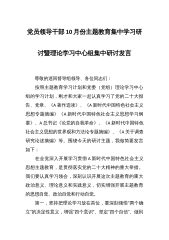 党员领导干部10月份主题教育集中学习研讨暨理论学习中心组集中研讨发言