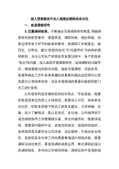 深入贯彻落实中央八项规定精神具体办法一、改进调查研究1.注重调研效果。不断健全完善调查研究制度,明确调查研究的职责要求,课题审批、调研协助、报告审核、结果运用等各个环节的标准和要求,将调研工作制度化、规范化、日常化。建立“阶段性热点”与“问题导向”为内容的调研机制,关注公司生产经营改革发展过程中,各个阶段的“热点”性问题,深入基层开展调查研究;加强调研的问题导向,根据暴露出的相关问题,做好专题调研。涉及改革、发展和稳定工作中具有普遍性的重要问题由总经理办公室党委办公室统筹安排,涉及专项领域的重要问题按照部门分工进行安排。公司领导到基层调研坚持轻车简从、节俭高效,既要听取基层单位负责人介绍情况,...