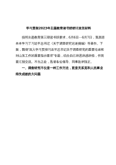 2023年国企集团党委书记在XX单位主题教育调研成果交流会上的讲话同志们从刚才大家的发言来看,总体感觉此次班子成员全面深入开展调研,体现了调研内容“实”、调研范围“广”、问题整改“快”等特点。2023年4月,主题教育开展以来,XX国企(集团)党委深入贯彻落实习近平总书记在学习贯彻习近平新时代中国特色社会主义思想主题教育工作会议和视察XXX重要讲话精神,持续深入开展调查研究,进一步加深了对主题教育重大意义的认识,深化了对习近平新时代中国特色社会主义思想的理论学习,找出了存在的突出问题和差距,研究了解决问题的思路和办法,有力推动了主题教育的深入开展和重点工作的有效落实。按照XX导组要求,XX国企(...