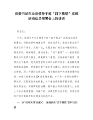 县委书记在领导干部基层接访工作专题会议上的讲话:深化“四下基层”作风建设同志们:今天,我们召开领导干部基层接访工作专题会议,主要任务是全面落实习近平总书记关于加强和改进人民信访工作的重要思想,深化"四下基层"作风建设,推动基层信访工作向纵深发展,切实解决群众身边的急难愁盼问题。"四下基层"是习近平总书记在福建工作期间大力倡导并身体力行形成的优良传统,即宣传党的路线、方针、政策下基层,调查研究下基层,信访接待下基层,现场办公下基层。这一优良传统,生动体现了党的根本宗旨和群众路线,是做好基层工作的重要法宝。当前,我们面临着复杂多变的发展环境和日益繁重的改革发展稳定任务。基层是一切工作的落脚点,是联...