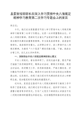 县委常委、县纪委书记、县监委主任在深入学习贯彻中央八项规定精神学习教育第三次学习专题会上的发言