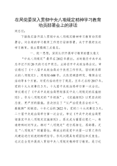 在局党委深入贯彻中央八项规定精神学习教育动员部署会上的讲话同志们:下面我们套开深入贯彻中央八项规定精神学习教育动员部署会,对全局的学习教育工作进行安排部署。关于开展好这次学习教育,我主要强调三点意见。 一、统一思想,深刻认识开展学习教育的重大意义“中央八项规定”最早在2012年提出,当时就任中共中央总书记不到20天的习近平同志,主持召开中央政治局会议,审议通过了《十八届中央政治局关于改进工作作风、密切联系群众的八项规定》,用短短600字,从改进调查研究、精简会议活动等8个方面,对党内活动进行了规范。五年之后的2017年,党的十九大闭幕仅3天,十九届中央政治局举行第一次会议,审议通过了《中...
