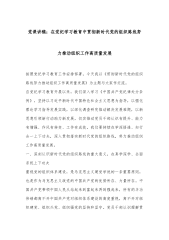 在调研成果交流会上的发言提纲:关于在乡村振兴中进一步提升农村基层党组织政治功能和组织功能各位领导、同志们:按照主题教育工作安排,我围绕“关于在乡村振兴中进一步提升农村基层党组织政治功能和组织功能”调研课题,以充分发挥区委领导作用为牵引,压紧压实乡镇抓党建促乡村振兴主体责任,进一步夯实农村党组织战斗堡垒作用,不断提升基层党组织的凝聚力和战斗力。现就调研情况交流如下。一、调研开展情况主题教育开展以来,我始终坚持以习近平新时代中国特色社会主义思想为引领,将调查研究贯穿主题教育始终聚焦主责主业,抓住主题主线,以多形式、多途径开展调查研究,力求发现真问题、寻找真对策、见到真成效。一是到基层、摸实情。坚持...
