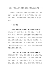 2024年书记上半年抓基层党建工作情况总结述职报告2024年,x坚持以习近平新时代中国特色社会主义思想为指导,认真履行党建“第一责任人”职责,突出“五抓五促五提升”,持续提升国资国企基层党建质量。现述职如下。一、工作成效(一)抓政治建设,促理论武装,提升组织引领力。带头落实“第一议题”制度,全年召开党委会、“每周一学习”共x次,领学习近平总书记重要讲话和重要指示批示精神等内容x次。扎实开展学习贯彻习近平新时代中国特色社会主义思想主题教育,举办读书班x期,专题研讨x次,带头上主题教育专题党课x次,开展调查研究x次。指导x个基层党支部开展集中学习讨论x余次,为推动国资国企高质量发展提供思想保障。(...