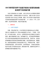 XX市研究室“抓学习促提升抓执行促落实抓效能促发展”行动实施方案为深入贯彻党的XX大精神、XJP总书记对XX重要讲话重要指示批示精神,全面落实省第XX次党代会、省委XX届X次全会以及市委X届X次全会工作部署,根据《XX市“抓学习促提升抓执行促落实抓效能促发展”行动实施方案》(X〔2023〕X号)文件精神,结合研究室实际,制定本实施方案。一、主要任务(一)抓学习促提升问题:理论武装不深。对XJP新时代中国特色社会主义思想、党的XX大精神和D中Y重大决策部署学习不深入、不系统、不透彻,学习内容片面化、碎片化,运用贯穿其中的立场观点方法研判形势、解决问题的能力欠缺。知识储备不足。对文稿起草和调查研究...