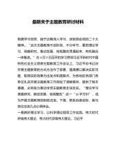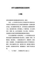 关于主题教育经验交流材料(9篇)实现主题教育与高质量发展互促并进(高校) 日前,xx大学材料与化学化工学部召开学习贯彻习近平新时代中国特色社会主义思想主题教育第一次调研成果交流会。自主题教育开展以来,该学部成立主题教育领导小组,制定调研方案,研究确定xx个调研项目,深入教学、科研、管理一线,走访兄弟院校、用人单位、科研机构,对症查找分析制约学部高质量发展的难点和堵点。 作为主题教育第一批参加单位,xx大学党委坚决扛起组织实施好主题教育的重大政治责任,加强统一领导、统筹规划、推动落实,一体推进理论学习、调查研究、推动发展、检视整改,把主题教育激发出来的工作热情和奋斗精神,转化为解师生之盼、解...