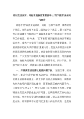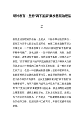 2023年政协委员代表在第一季度党内主题教育学习座谈会上的发言汇编(8篇)1.抓好履职关键点助推高质量发展(政协主席)2.建百姓身边的大学办人民满意的教育(高校党委书记)3.成为落实科技政策的领头雁(办公室主任)4.紧跟时代步伐写好“调查研究”新篇章(副区长)5.把学习成果转化为中国式现代化xx场景的生动实践(集团公司董事长)6.推动实现全省老年人享有基本养老服务(集团公司总经理)7.聚焦主责主业服务实体经济发展(集团公司总经理)8.加强党的创新理论武装认真履行委员职责(集团公司总经理)抓好履职关键点助推高质量发展(政协主席)习近平总书记强调高质量发展是全面建设社会主义现代化国家的首要任务,这...