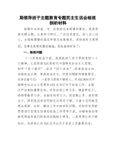 局领导班子主题教育专题民主生活会检视剖析材料按照中央和省、市、区委的总体部署和要求,我局党委对照主题,认真学习研讨,广泛征求意见,深入交心谈心,全面梳理整改落实和意见征集情况,深刻剖析主观原因,实事求是制定整改措施。现检查剖析如下:一、检视问题(一)思想政治方面。我局能深入学习贯彻党的二十大精神,认真贯彻XXX新时代中国特色社会主义思想,树牢“四个意识”,坚定“四个自信”,把准政治方向、站稳政治立场、保持政治定力,但是对照新形势新要求,还存在着不足:一是学习贯彻不够深入。对XXX新时代中国特色社会主义思想和XXX总书记关于扶贫工作、全面从严治党的重要论述,还存在纸上学习多、调查研究少,局部零散...