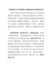 市国资委关于全市国资国企主题教育阶段性进展情况汇报作为学习贯彻习近平新时代中国特色社会主义思想主题教育第二批参加单位,市国资委认真落实党中央和省委、市委安排部署,切实履行抓好自身主题教育和推动国资国企系统开展好主题教育的“双重责任”,把理论学习、调查研究、推动发展、检视整改等贯通起来一体推进,确保主题教育取得实实在在的成效。现将有关工作进展情况汇报如下:学思悟用并重,抓实理论学习、淬炼政治忠诚。坚持将“学思想”摆在首位,全面加强理论武装,持续用习近平新时代中国特色社会主义思想凝心铸魂。原原本本扎实“学”。举办为期一周的读书班,组织党员干部系统学原文、读原著编制发放习近平总书记关于国有经济、国资...
