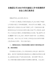 在集团公司2025年作风建设工作专班调研评估会上的汇报讲话