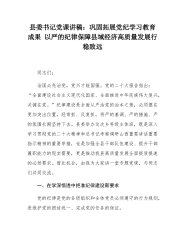 县委书记党课讲稿:巩固拓展党纪学习教育成果 以严的纪律保障县域经济高质量发展行稳致远