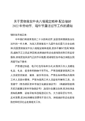 关于贯彻落实中央八项规定精神 配合做好2022年劳动节、端午节廉洁过节工作的通知