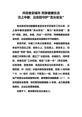 共创食安城市同享健康生活“”汶上中都:出实招守护舌尖安全自全面启动创建国家食品安全示范城市工作以来,汶“”“”上县中都街道聚焦舌尖安全,聚力食安创建,坚“”持风险、源头、全程、共治一体齐抓,持续稳固食品安全形势,出实招推动食品安全保障水平不断提升。两责同抓,创建工作高点统筹推进。中都街道把食品安全作为民生工程,放在心上、扛在肩上、抓在手上,切“”实推进双责落实。成立了由街道党政主要领导任组长的“创建工作领导小组,建立了分层分级、末端发力、闭环管”“”控、终端见效工作机制,制定三单一书(责任清单、任务清单、督查清单、食品安全责任与任务承诺书),实现街道、村(社区)分层分级包保全覆盖,街道18名科...