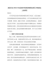 副县长在2021年全县校外培训机构规范治理工作推进会上的讲话同志们:今天召开这次校外培训机构规范治理工作会议,会议主题是,总结前期我县校外培训机构治理情况,对下步培训机构治理工作进行再部署、再安排。根据工作安排,在前期治理的基础上,县政府成立的工作专班,在这次推进会后将集中开展整治活动,对前期治理成果进行督查,对经过前段时间整治仍存在问题的校外培训机构再进行深入整治,坚决达到预期专项整治效果。关于下步工作我讲以下意见。一、要勇于正视存在的问题截止x月底,我县经批准设立的证照齐全的培训机构xxx家,其中学科类xxx家,拓展的体育艺术类xx家,通过前期的整治已关停xx家。同时,目前仍存在一些无证无...