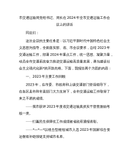 市交通运输局党组书记、局长在2024年全市交通运输工作会议上的讲话同志们:这次会议的主要任务是:以习近平新时代中国特色社会主义思想为指导,全面落实部、省、市会议要求,总结2023年交通运输工作,部署2024年重点工作,统一思想、凝聚力量,动员全市交通系统奋力推进交通运输高质量发展,勇当建设社会主义现代化新*的开路先锋。下面,我报告两个方面的内容:一、2023年主要工作回顾2023年,在市委、市政府和上级交通部门坚强领导下,在各区县市和市直部门大力支持下,全市交通运输工作取得了来之不易的成绩。——我市获评2023年度省交通运输真抓实干督查激励考核一类。——打赢民生保障仗工作成绩被省政府通报表彰。...