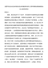 县委书记在全县乡村振兴及乡村建设和农村人居环境整治现场推进会议上的讲话范文同志们:前面,我们传达学习了习近平、李克强等中央领导同志有关重要讲话精神,以及全国和省委、市委有关会议精神,签订了2022年巩固成果和乡村振兴重点工作责任书,讨论审议了有关事项,xx同志通报了2021年度x省实施乡村振兴战略考核情况。在x省2021年度实施乡村振兴战略考核和巩固拓展脱贫攻坚成果专项考核中,我县分别被评为“优秀”和“好”等次,在全省x个被考核县中排名第二,全市均排名第一;在东西部协作考核中我县也被评为“好”等次;我和x县长在县(市区)党委和政府主要负责人履行乡村振兴工作第一责任人职责情况督查考核中也被确定为...
