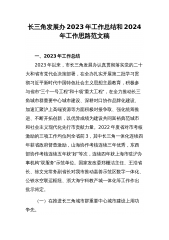 长三角发展办2023年工作总结和2024年工作思路范文稿