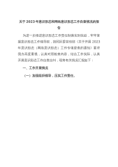 2023年意识形态和网络意识形态工作责任制落实情况自查报告汇编(4篇)2023年意识形态和网络意识形态工作自查情况报告 为进一步推进意识形态工作责任制落实到实处,牢牢掌握意识形态工作领导权,按照区委宣传部《关于开展2023年意识形态(网络意识形态)工作专项督查的通知》要求,我办高度重视,认真对照检查内容,结合工作实际认真开展意识形态工作自查自纠,现将有关情况汇报如下: 一、工作开展情况 (一)加强组织领导,压实工作责任。将意识形态和网络意识形态工作纳入2023年度落实全面从严治党主体责任清单,制定《2022年度落实全面从严治党主体责任清单》,形成7个方面43项重点任务,细化分解具体任务,...