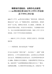 精耕细作强枢纽,奋楫争先启新程——xx国企综合部2025年上半年工作总结及下半年工作计划2025年上半年,xx国企综合部锚定“服务发展、保障运转、赋能全局”定位,以“精细化管理、创新性服务、系统性协同”为主线,深耕综合协调、以文辅政、后勤保障、督查督办等核心职能,在谋全局中抓落实,于破难题中显担当,为公司高质量发展构筑坚实保障。现将上半年工作全景复盘,并对下半年任务进行系统谋划。一、2025年上半年工作总结:多维发力显担当,固本强基提质效(一)统筹协调:筑牢高效运转“中枢轴”作为公司运转的“神经中枢”,综合部以“一盘棋”思维统筹全局。上半年高效组织党委会、总经理办公会等重要会议xx次,精准提炼...