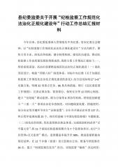 县纪委监委关于开展“纪检监察工作规范化法治化正规化建设年”行动工作总结汇报材料今年以来,县纪委监委深入贯彻落实中央纪委、省市纪委全会精神,以“纪检监察工作规范化法治化正规化建设年”行动为抓手,聚焦主责主业,深化改革创新,健全制度机制,强化队伍建设,推动纪检监察工作高质量发展取得新成效。现将主要工作情况汇报如下:一、坚持系统谋划,高站位部署推进规范化法治化正规化建设(一)强化顶层设计,构建“四梁八柱”制度体系。对标中央纪委《关于加强纪检监察工作规范化法治化正规化建设的意见》,结合县实际制定“1+8”实施方案,明确32项重点任务、86条具体措施。修订《县纪委监委工作规则》,完善议事决策、督查督办、...