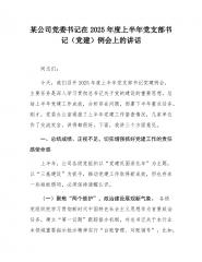 某公司党委书记在2025年度上半年党支部书记(党建)例会上的讲话