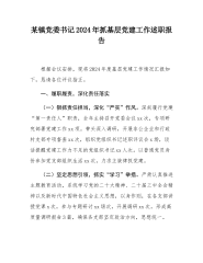 2024年度党委书记抓基层党建述职报告与2024年书记抓党建工作述职报告2篇文【供参考】2024年度党委书记抓基层党建述职报告按照会议要求,现将本人一年来抓基层党建工作情况报告如下:一、履职工作特色和亮点(一)带头落实基层党建工作责任制,切实履行好基层党建“第一责任人”职责。在抓具体党建工作中,我作为“第一责任人”,年初即组织制定了年度党建工作计划,层层签订党建工作责任书,加强领导、党员的管理。乡党委每月至少召开一次专题会议,督查落实党建工作情况,研究解决重大问题。制定和推行领导干部包抓责任制和“四个一”工作机制(周汇报、句督查、月考核、季通报),形成了一级抓一级的党建工作格局。(二)抓好党委...