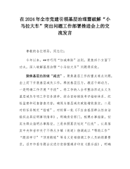在2024年全市党建引领基层治理暨破解“小马拉大车”突出问题工作部署推进会上的交流发言