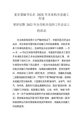 某市委秘书长在202X年市直机关党建工作述职评议暨2022年全市机关党的工作会议上的讲话在当前疫情形势十分严峻的情况下,市委同意召开这次会议,充分表某市委对机关党建工作的高度重视、对机关党务工作者的高度关心,也表明这次会议精神十分重要。x月xx日,xx书记主持某市委常委会议,专题某市直机关工委关于全省机关党的工作会议精神及贯彻落实意见的汇报,研究部署了相关工作,并就提高机关党建质量水平、更好发挥引领导向作用提了四点要求:一是全市各级各部门要深刻认识机关党建工作的重要性,加强政治建设督查,坚持问题导向,持续深化“三表率一模范”机关、文明机关、清廉机关创建。二是要加强机关党建工作,严防“灯下黑”“...