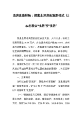危房改造经验:探索土坯房改造新模式让农村群众“忧居”变“优居” 某县是某省典型的丘区农业大县、人口大县,农村土坯房存量达16.39万户、占全县农村总户数的34.5%,农村土坯房数量多、分布广、改造难等问题成为我县打赢脱贫攻坚战的明显短板。近年来,我县高位推动、科学谋划、分类施策,在全省范围内率先针对存量土坯房开展改造工作,真正让广大农民群众住上新房子、过上好日子。今年5月,国务院办公厅《关于对2023年落实有关重大政策措施真抓实干成效明显地方予以督查激励的通报》,将某县评为“农村危房改造工作积极主动、成效明显的地方”。 一、主要做法 为织就农民“安居梦”、塑造乡村“新面貌”,某县通过明确...