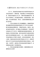X某市民政局2022年政务公开工作总结2022年,市民政局在省民政厅的文件要求和市政务公开办的业务指导下,围绕市委、市政府重点工作和民政系统业务,高标准开展政务公开工作。不断丰富政策解读手段,规范公示内容格式,突出惠民利民重点,做到及时更新、及时整改,努力做到零差错、零失分,以较好成绩顺利通过全年多次某市监。一、充分认识政务公开工作的重要意义,明确领导责任强化督查问某市民政局始终把政务公开工作作为法治政府、数字政府建设的重要内容,不断提升标准化、规范化,使之成为政府信息查询、部门数据公开的重要途径。市民政局不仅将政务公开工作作为一项重要的被考核指标抓紧抓实,更将政务公开是否及时准确、是否为民所...
