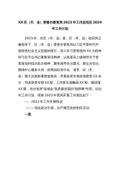 XX区(市、县)委督办督查局2023年工作总结及2024年工作计划2023年,在区(市、县)委、区(市、县)政府的正确指导下,区(市、县)委督办督查局以习近平新时代中国特色社会主义思想的指引,深入学习贯彻党的XX大精神和习近平总书记重要讲话精神,认真落实上级领导关于督查落实的指示批示精神,聚焦领导关注重点、群众关切点、围绕中心服务大局,统筹抓好党中央、省市、区(市、县)重大决策部署督促落实,开展各类专项实地督查XX余次,印发督查专报XX期,工作督办提醒函XX期、微快报XX期,充分发挥“强省会”高质量发展的“指挥棒”作用。结合年工作计划,现将2023年我局开展工作报告如下:一、2023年工作开展...