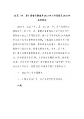 XX区(市、县)委督办督查局2023年工作总结及2024年工作计划2023年,在区(市、县)委、区(市、县)政府的正确指导下,区(市、县)委督办督查局以习近平新时代中国特色社会主义思想的指引,深入学习贯彻党的XX大精神和习近平总书记重要讲话精神,认真落实上级领导关于督查落实的指示批示精神,聚焦领导关注重点、群众关切点、围绕中心服务大局,统筹抓好党中央、省市、区(市、县)重大决策部署督促落实,开展各类专项实地督查XX余次,印发督查专报XX期,工作督办提醒函XX期、微快报XX期,充分发挥“强省会”高质量发展的“指挥棒”作用。结合年工作计划,现将2023年我局开展工作报告如下:一、2023年工作开展...