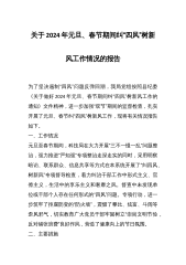 关于2024年元旦、春节期间纠“四风”树新风工作情况的报告